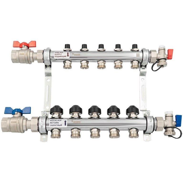 Коллектор для радиаторного отопления РЕХАУ HKV изготавливается из нержавеющей стали и предназначен для систем 2-контурного радиаторного отопления. Снабжён вентильными